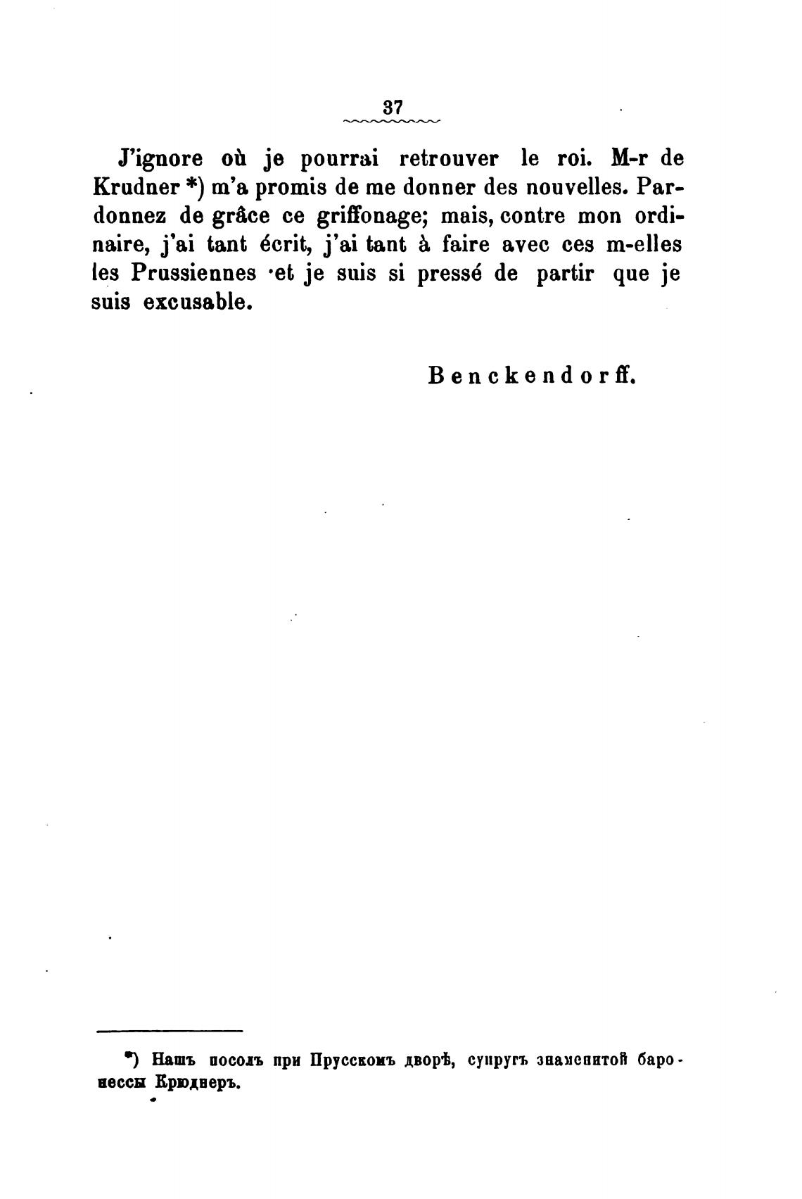 krudner *) т'а promis de те donner des nouvelles. Рат-