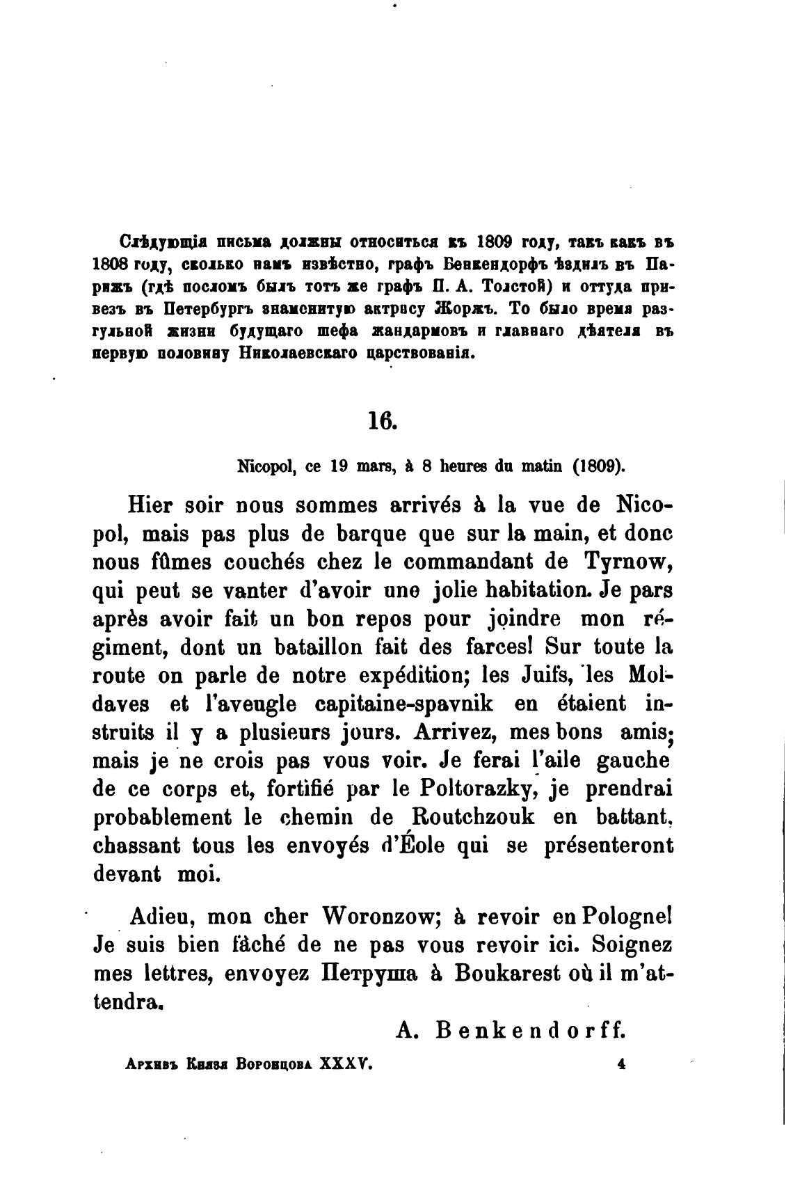 Adieu, топ cher Woronzow; revoir еп Polognel