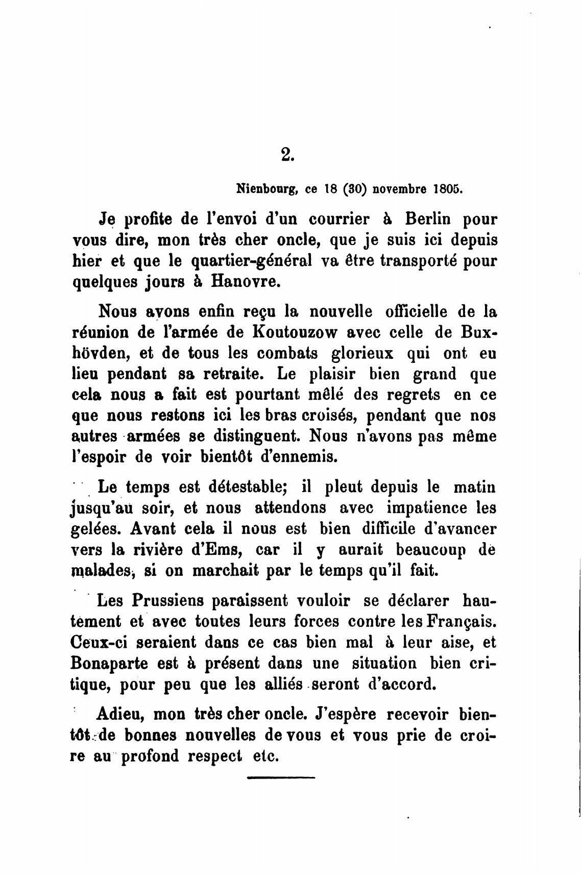 Nienboorg, се 18 (30) novembre 1805.