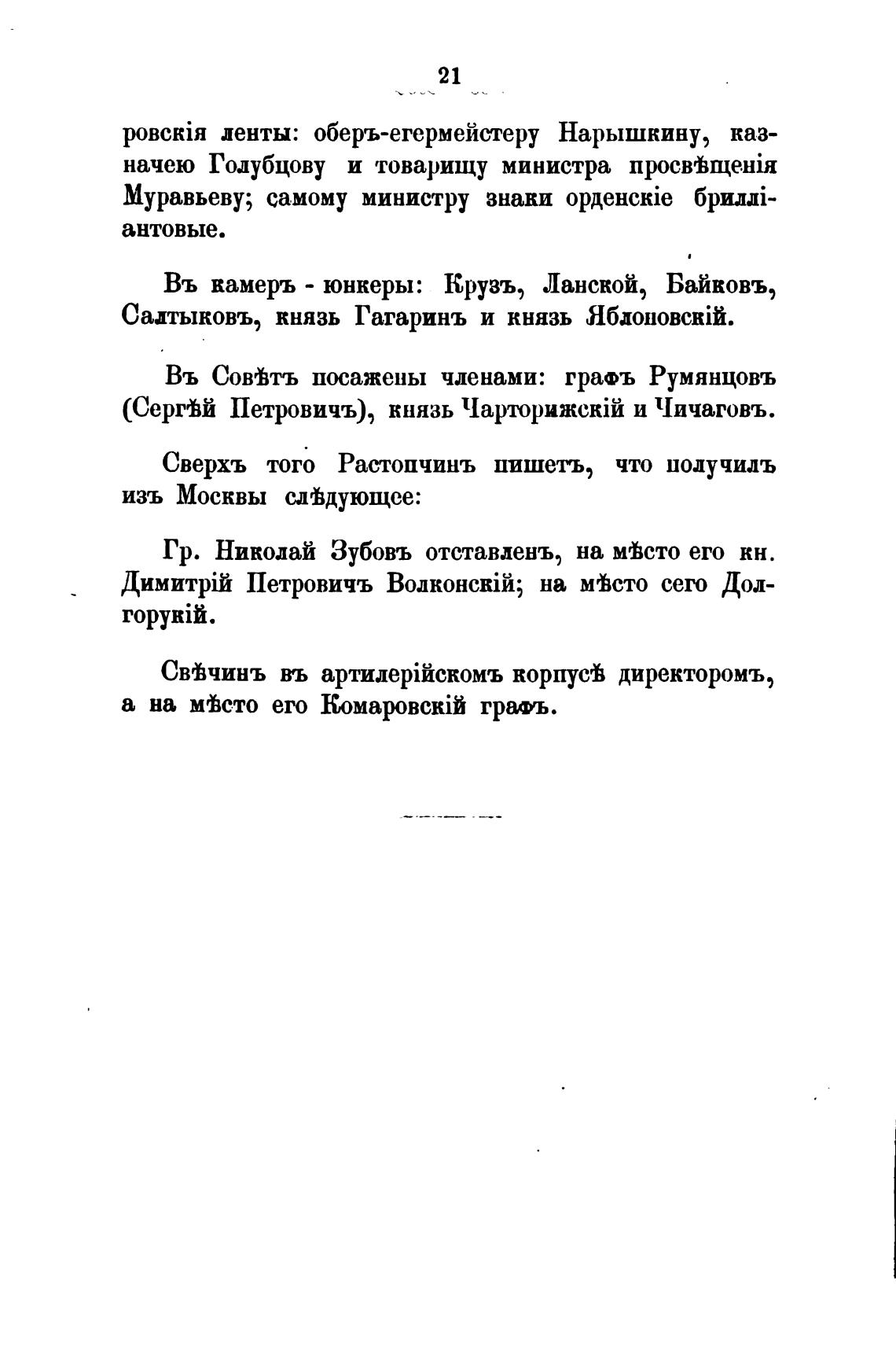 Въ Сов%тъ посажены членами: гра•ъ Румянцовъ