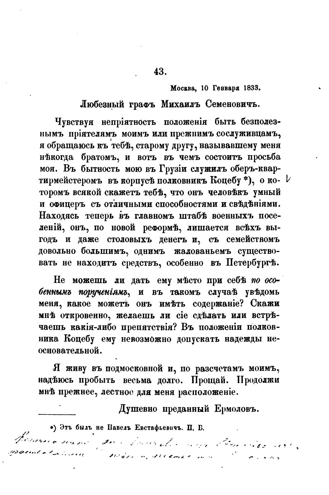 Москва, 10 Гевваря 1833.