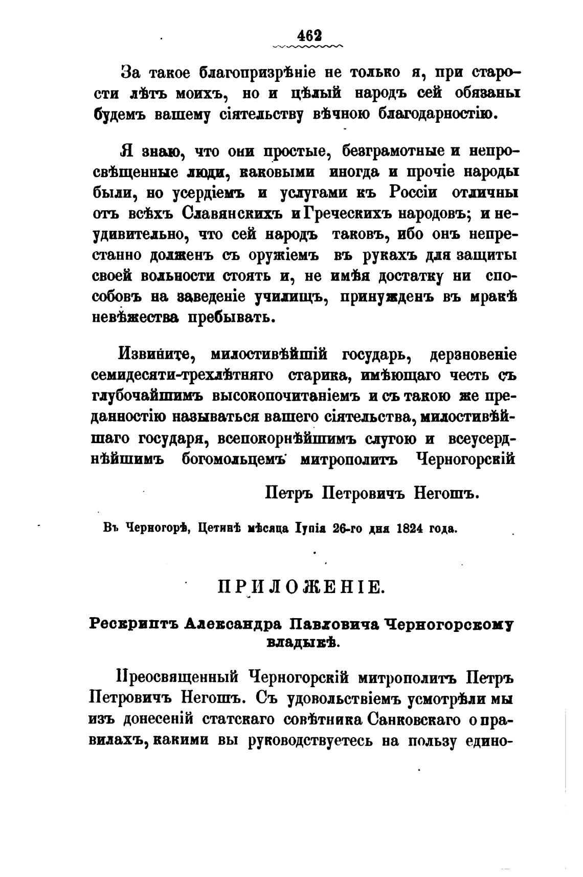 Въ Черногор±, Цетив•ђ м%слца Iynia 26-го дна 1824 года.