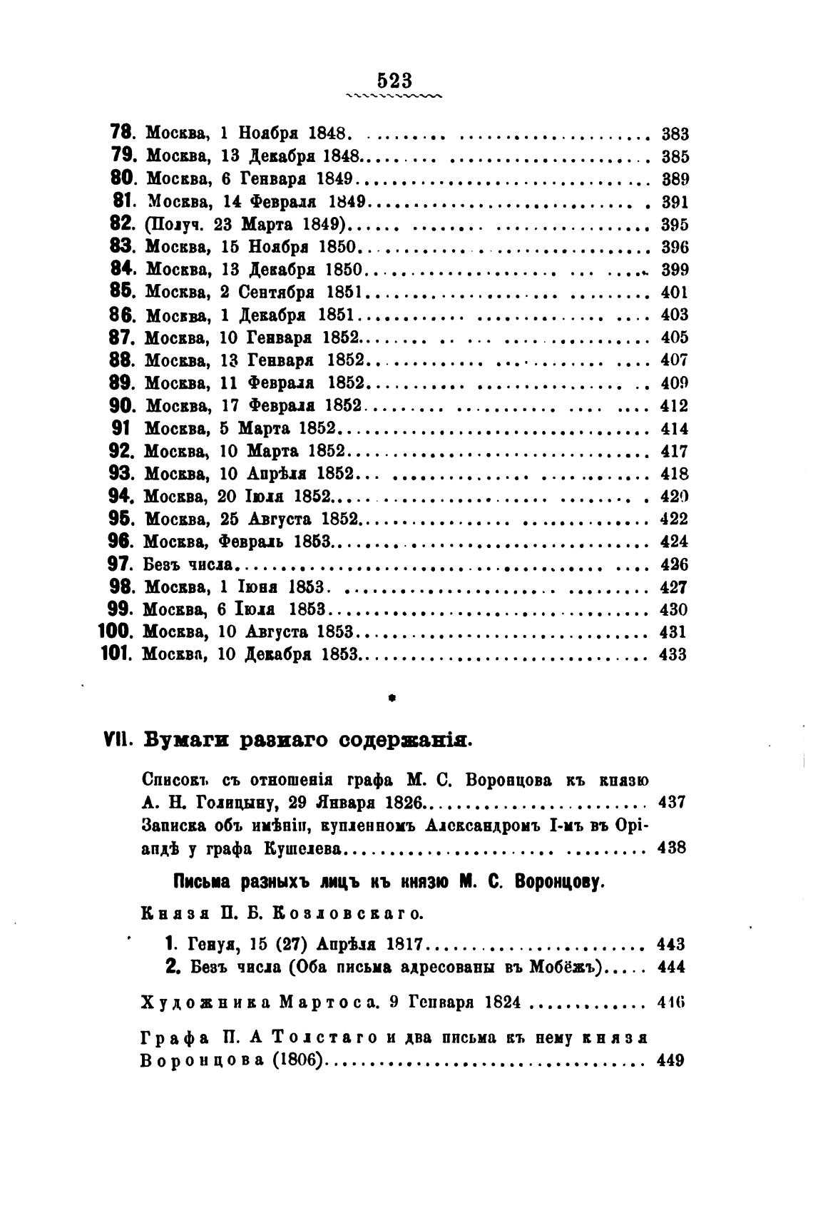 Письп разныхъ лицъ кь князю М. С. Воронцову.