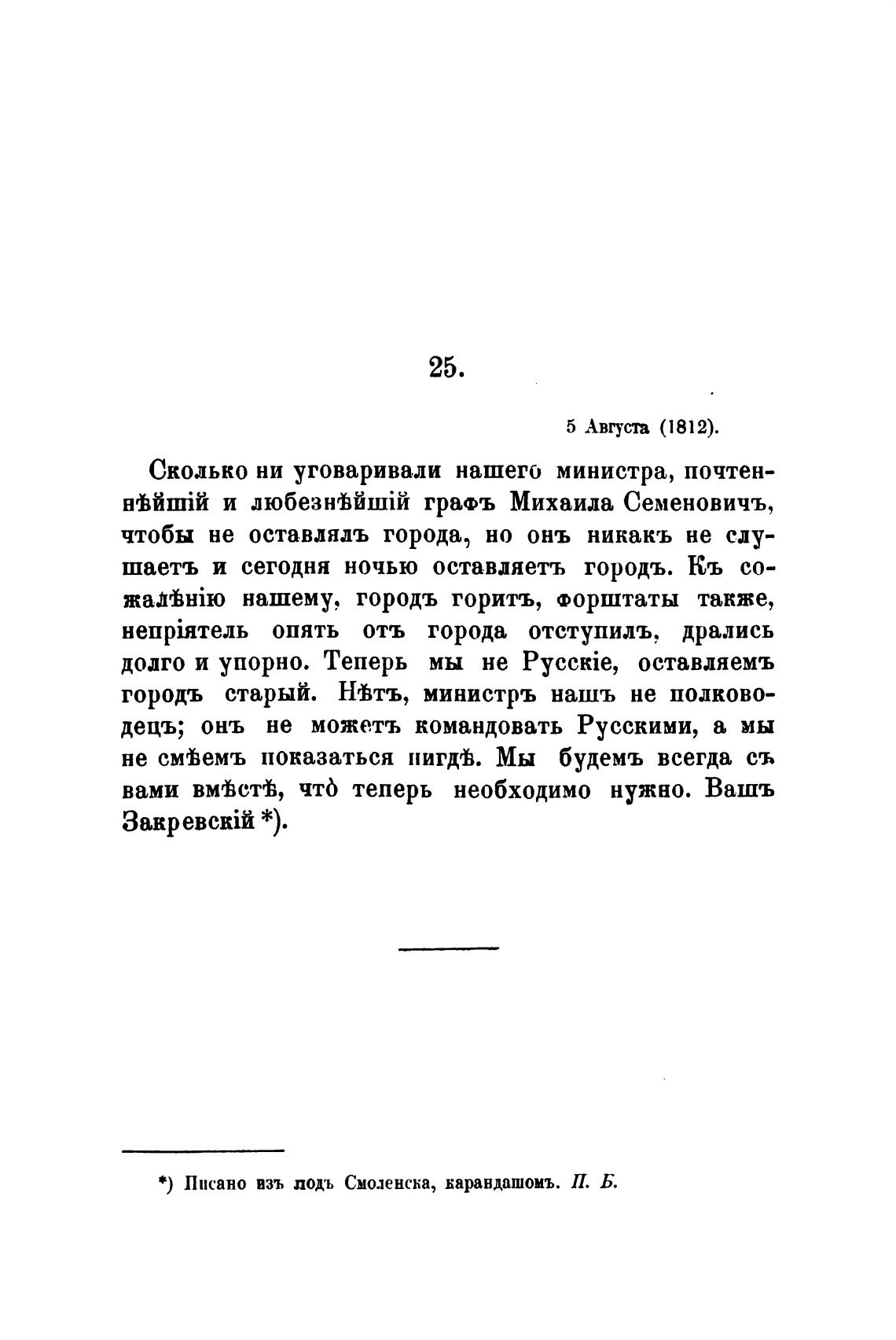 * ) Писано взъ лодъ Смоленска, жаравдашоиъ. П. Б.