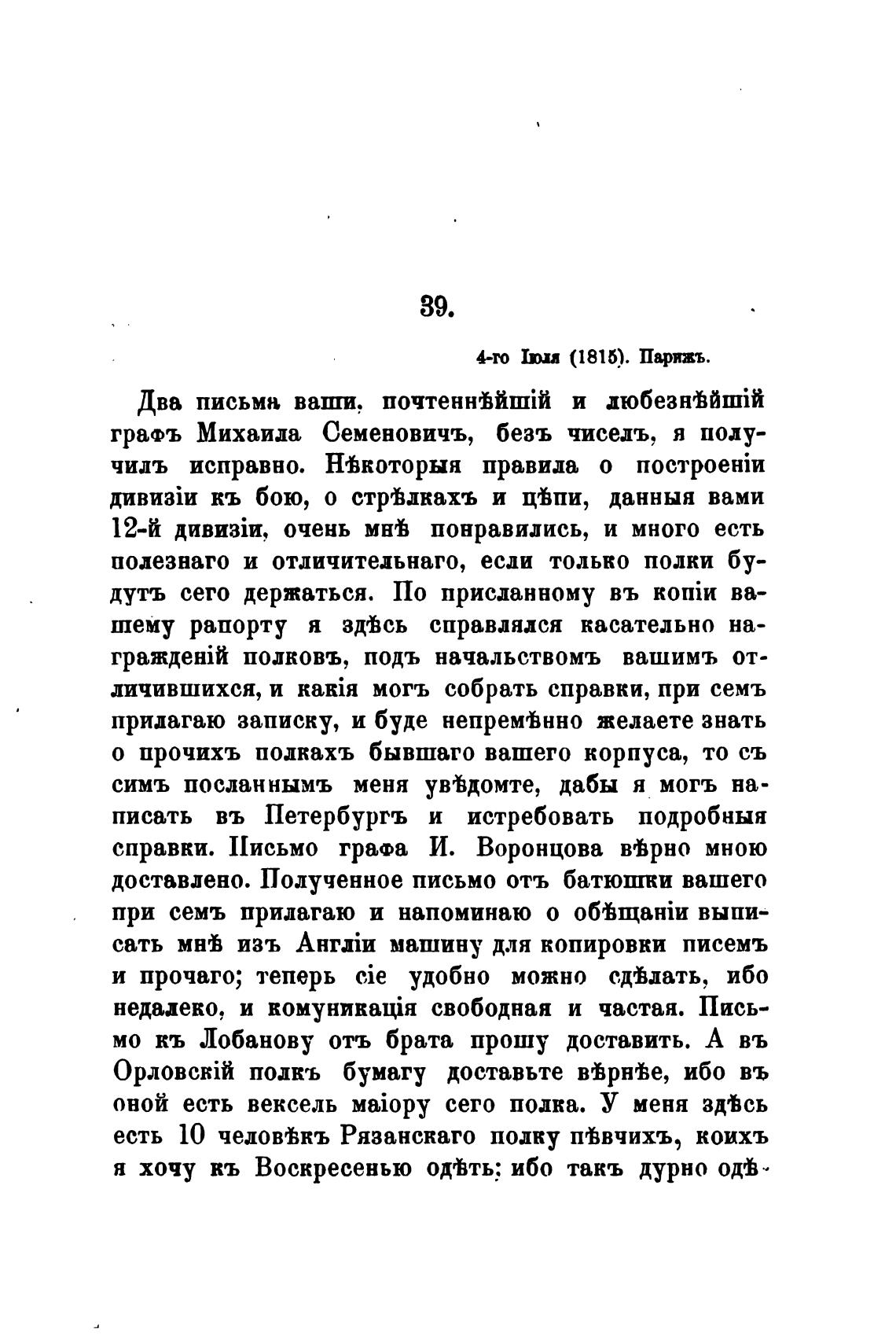 справки. 11исьмо графа И. Воронцова В'Ьрно мною