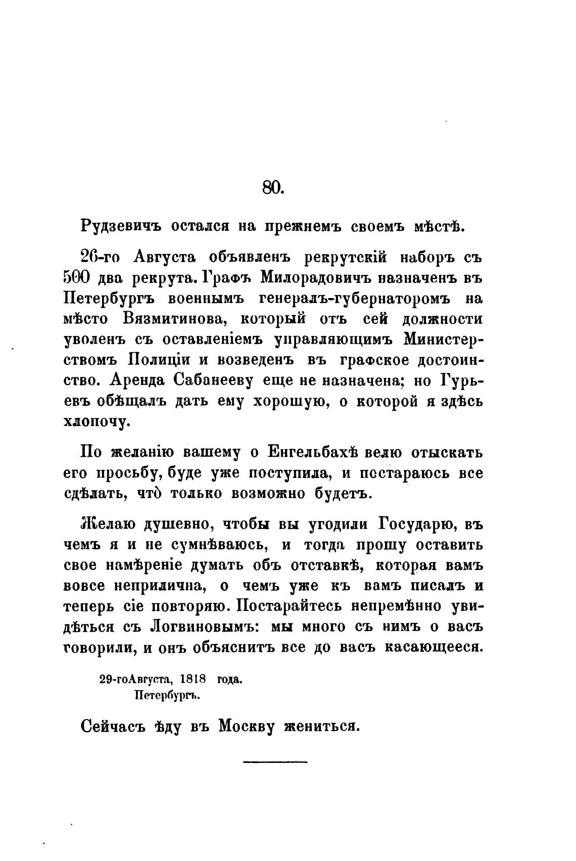 500 два рекрута. ГрафЪ Милорадовичъ назначень въ