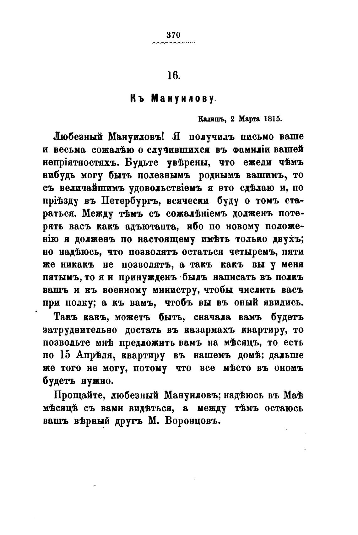 вашъ другъ М. Воронцовъ.