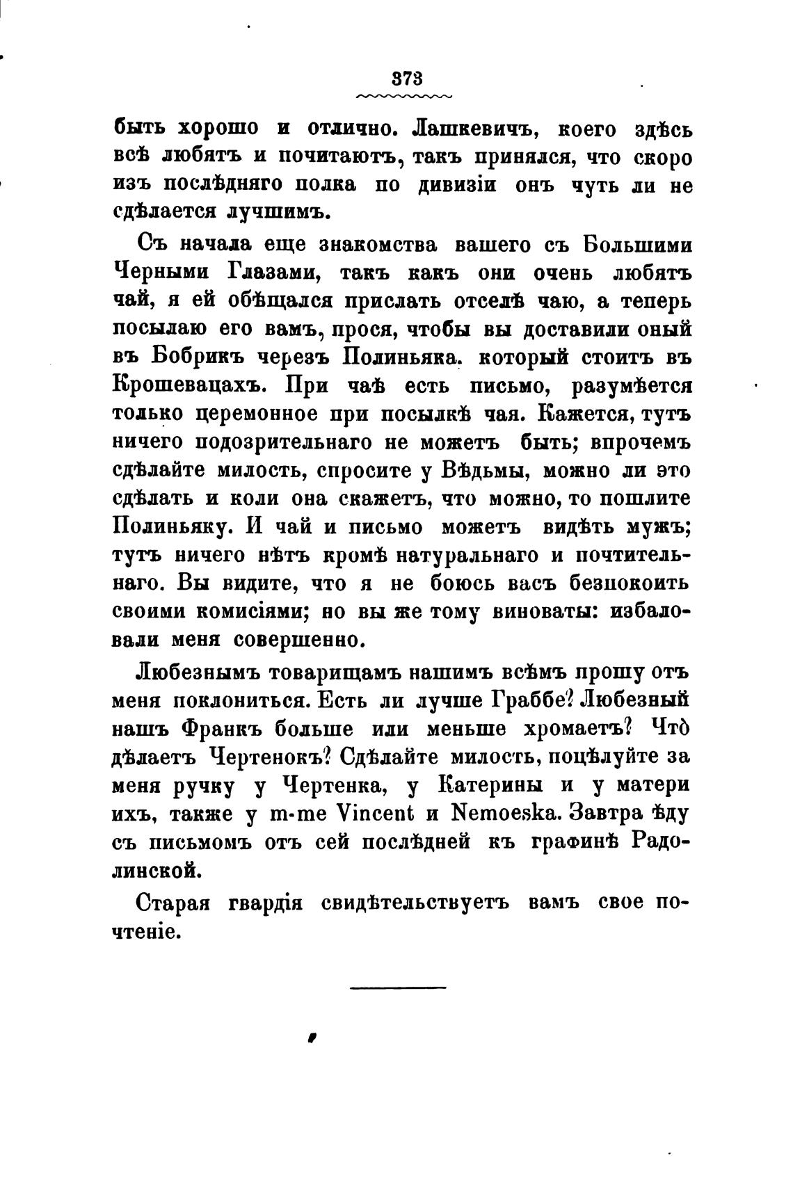 съ письмомъ отъ сей послЫней кь графинеЬ Радо-