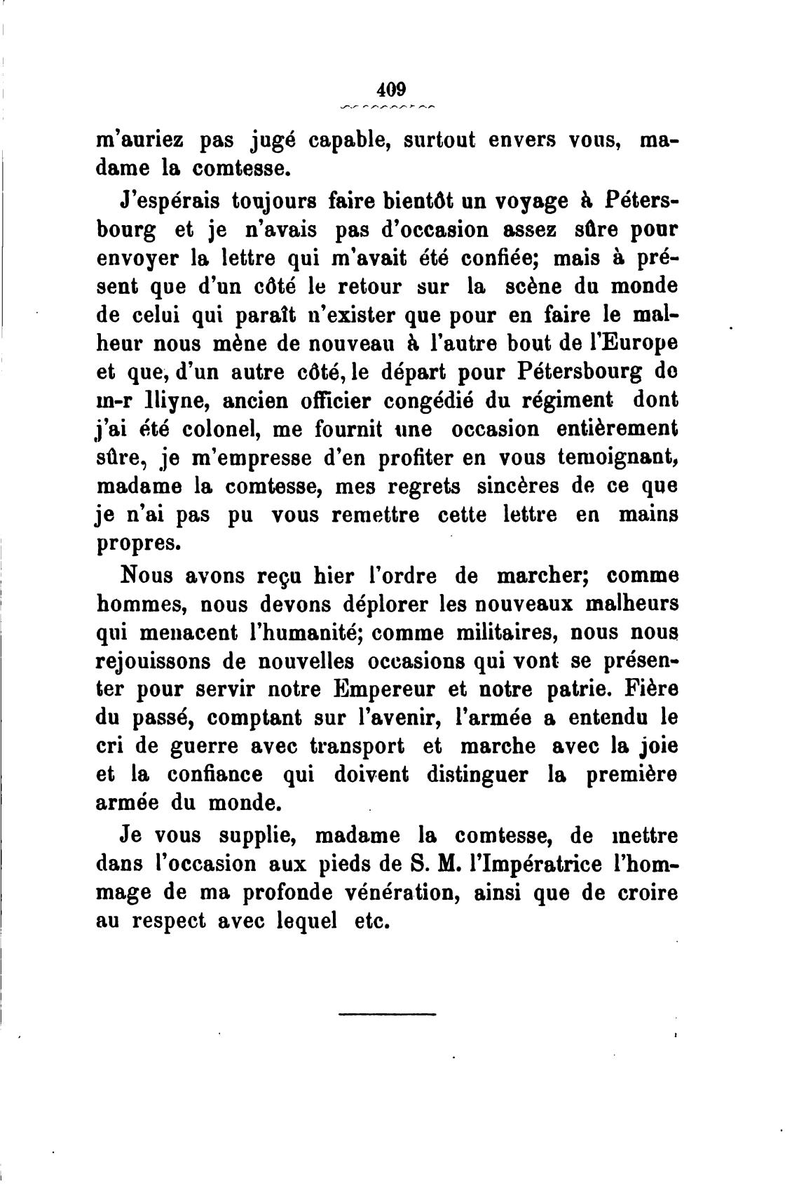 Је vous supplie, madame la comtesse, de mettre