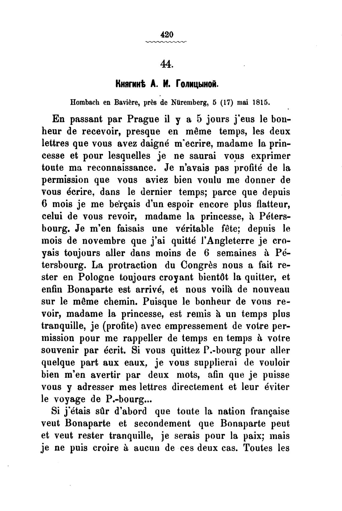 lettres que vous avez daign6 m'ecrire, madame [а prin-