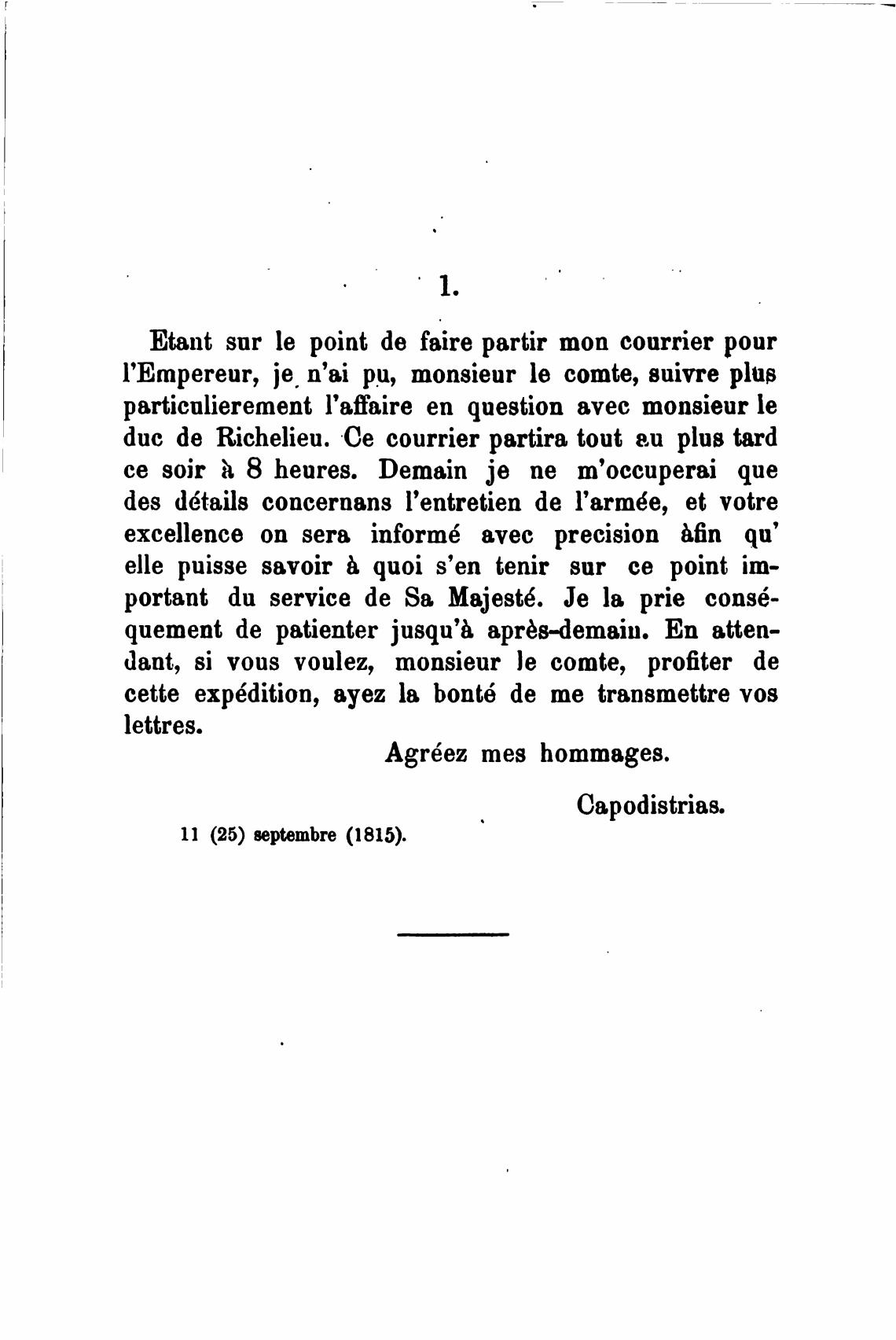 duc de Richelieu. Се courrier partira tout аи plus tard