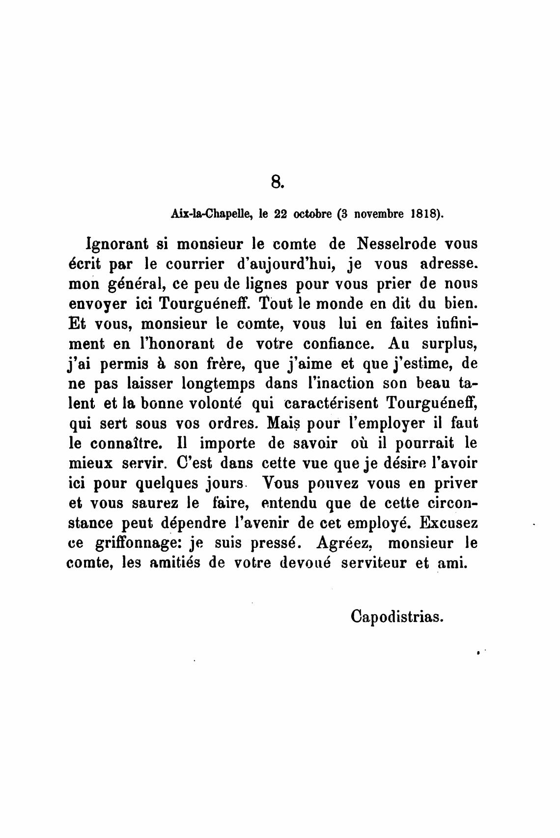 Aix-la-Chapelle, le 22 octobre (З novembre 1818).