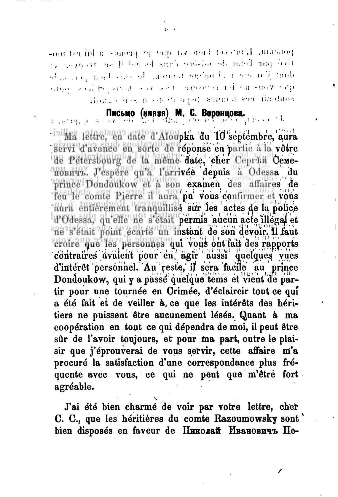 Письмо (ьнязя) М. С. Воронцова.