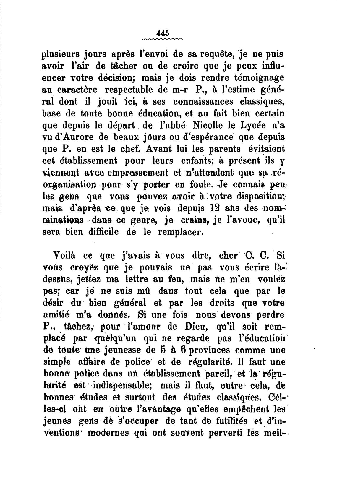 ral dont il jouit ici, ses connaissances classiques,