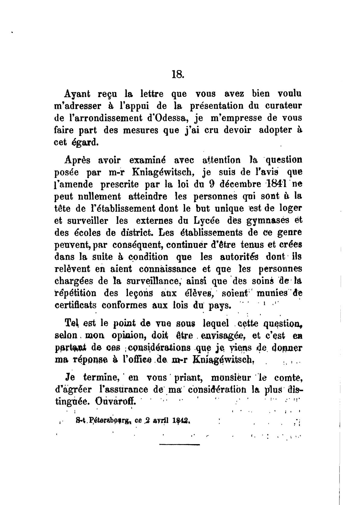 pos6e рат m-r kniag6witsch, је suig de l'aviS que