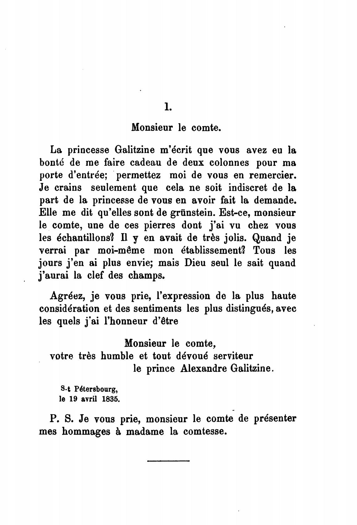Ьа princesse Galitzine m'6crit que vous avez еи la