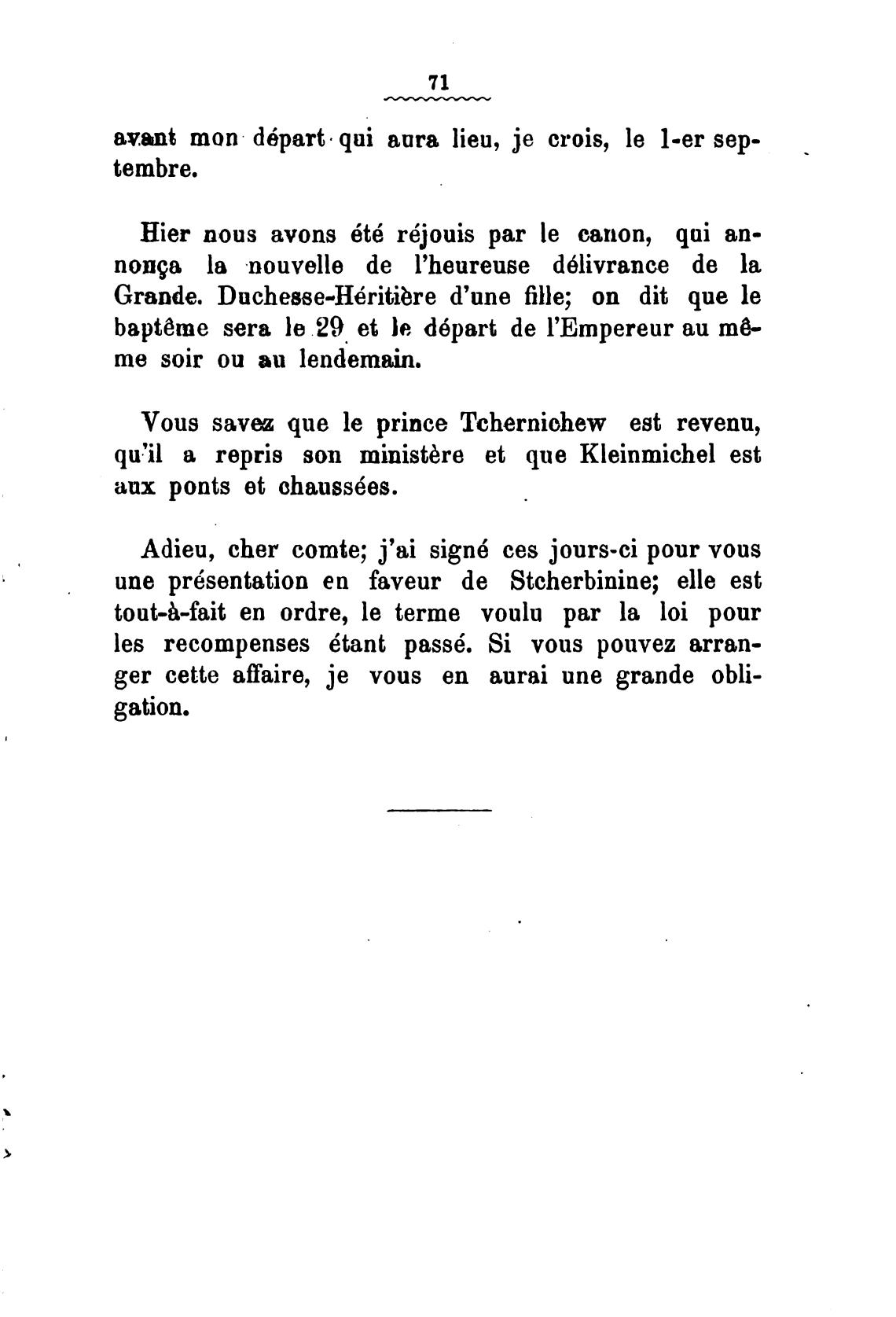 Adieu, cher comte; j'ai sign6 ces jours-ci pour vous