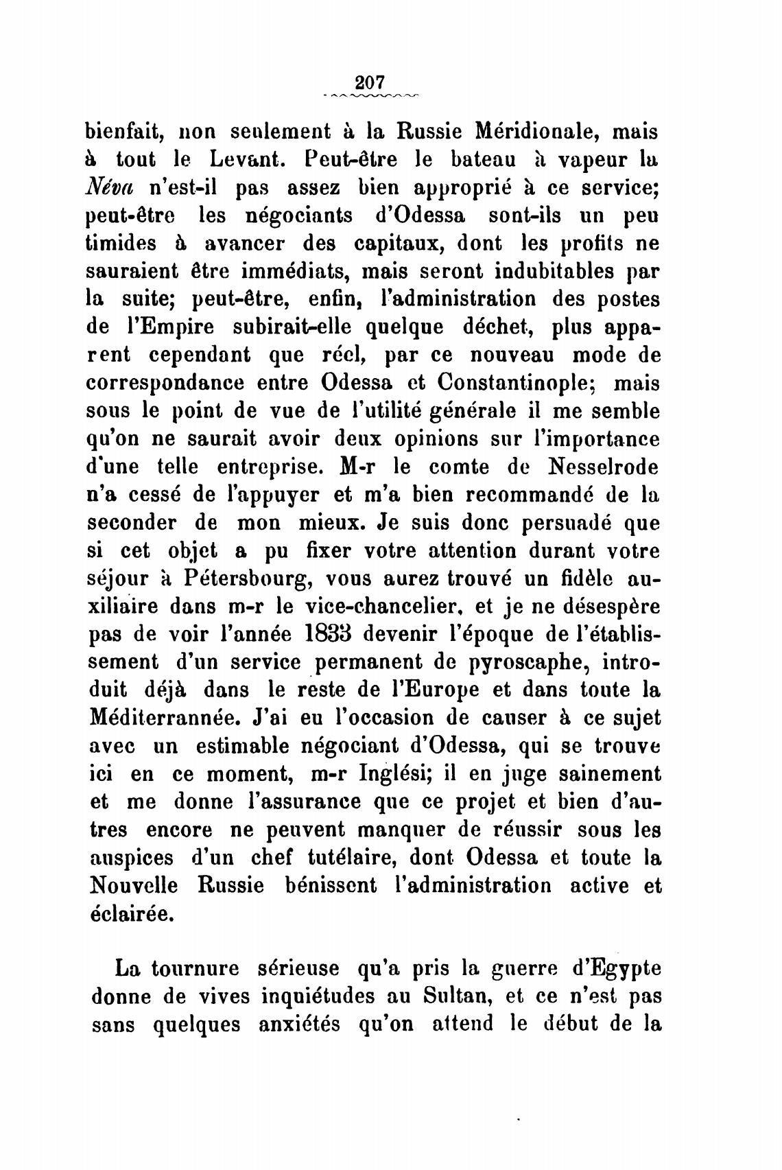 correspondance entre 0dessa et Constantinople; mais