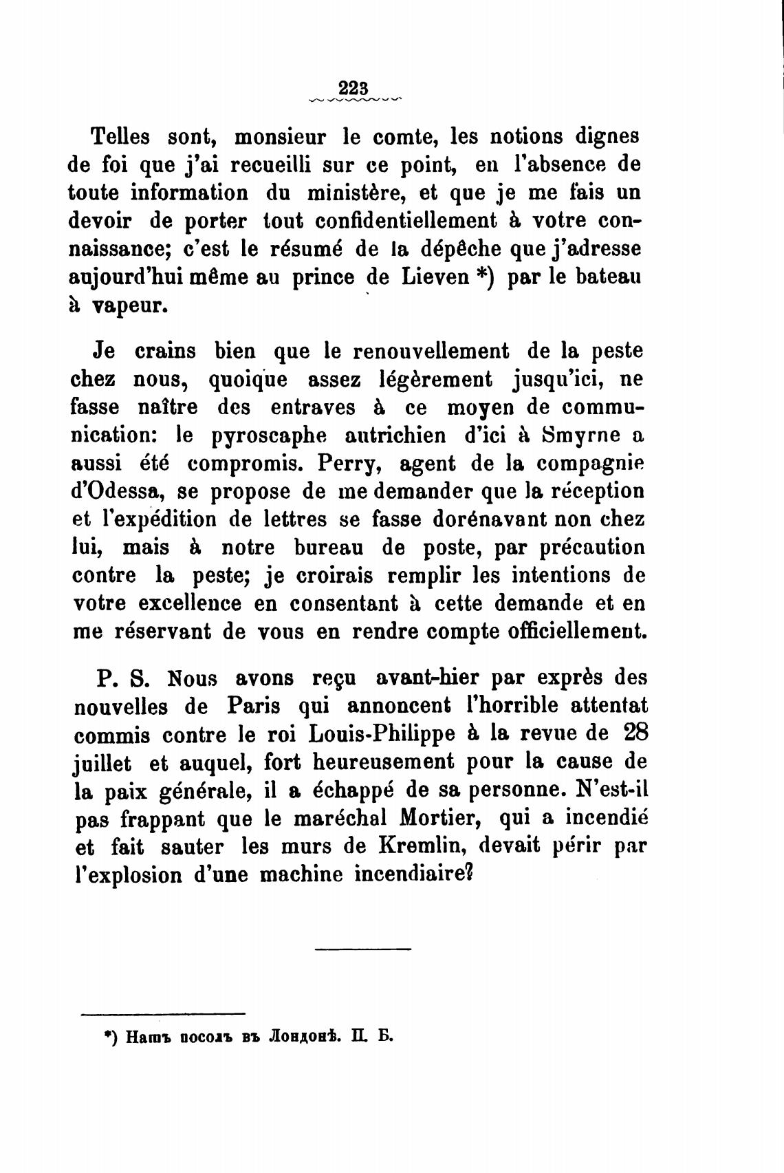 aujourd'hui тёте аи prince de Lieven *) par le bateau