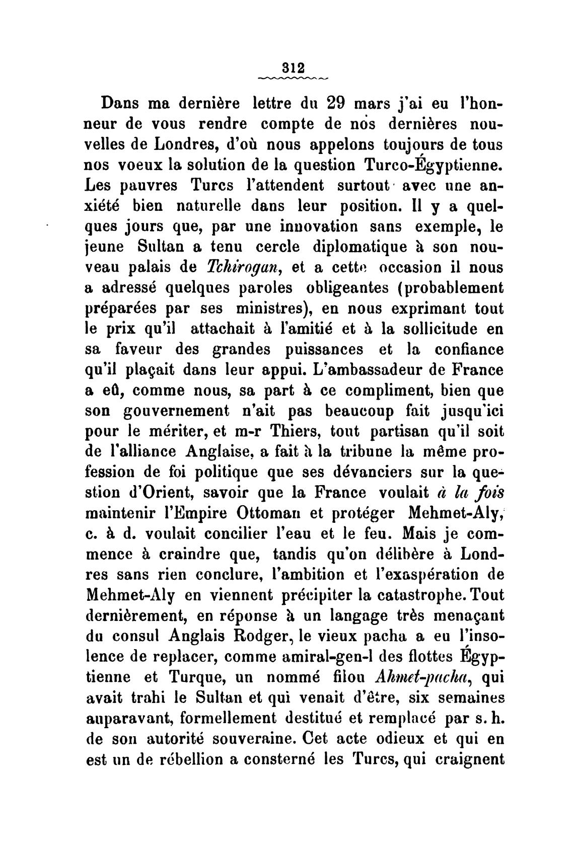 nos voeux la solution de la question Turco-Egyptienne.