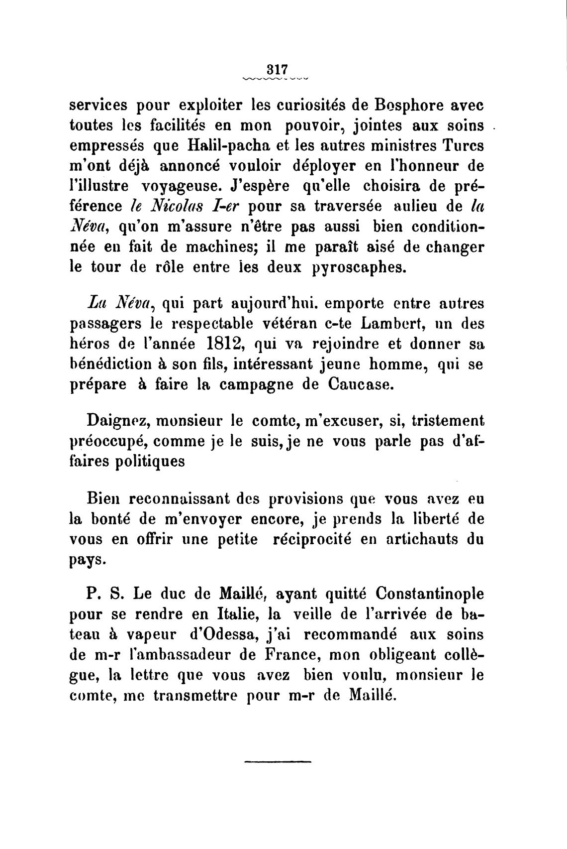 Р. S. Le duc de Mail16, ayant quitt6 Constantinople