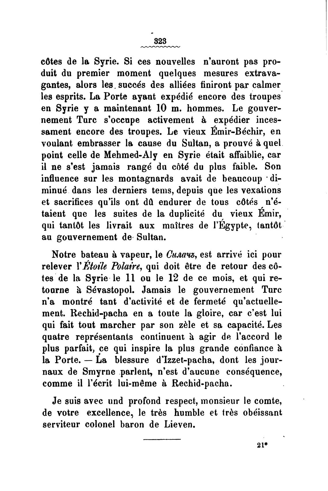 serviteur colonel baron de Lieven.