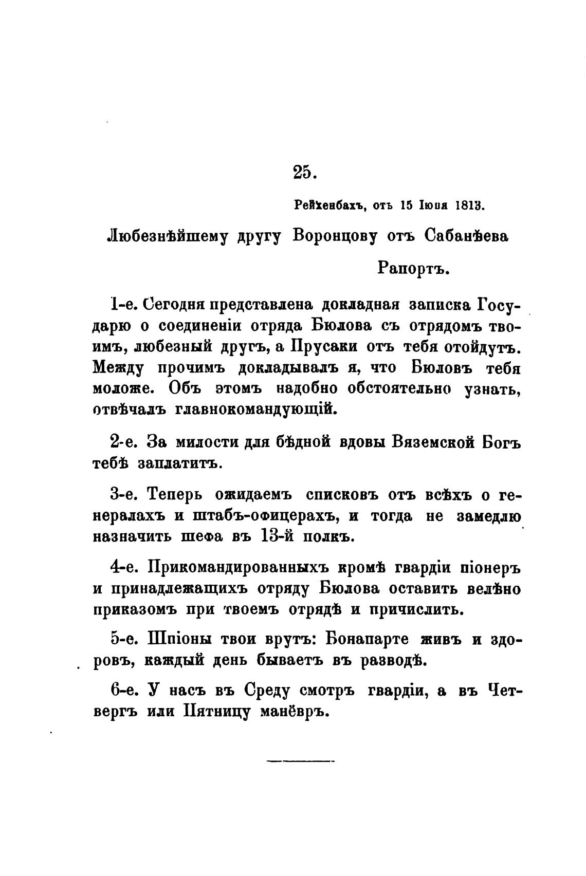 Любезнћйшему другу Воронцову отъ Сабанђева