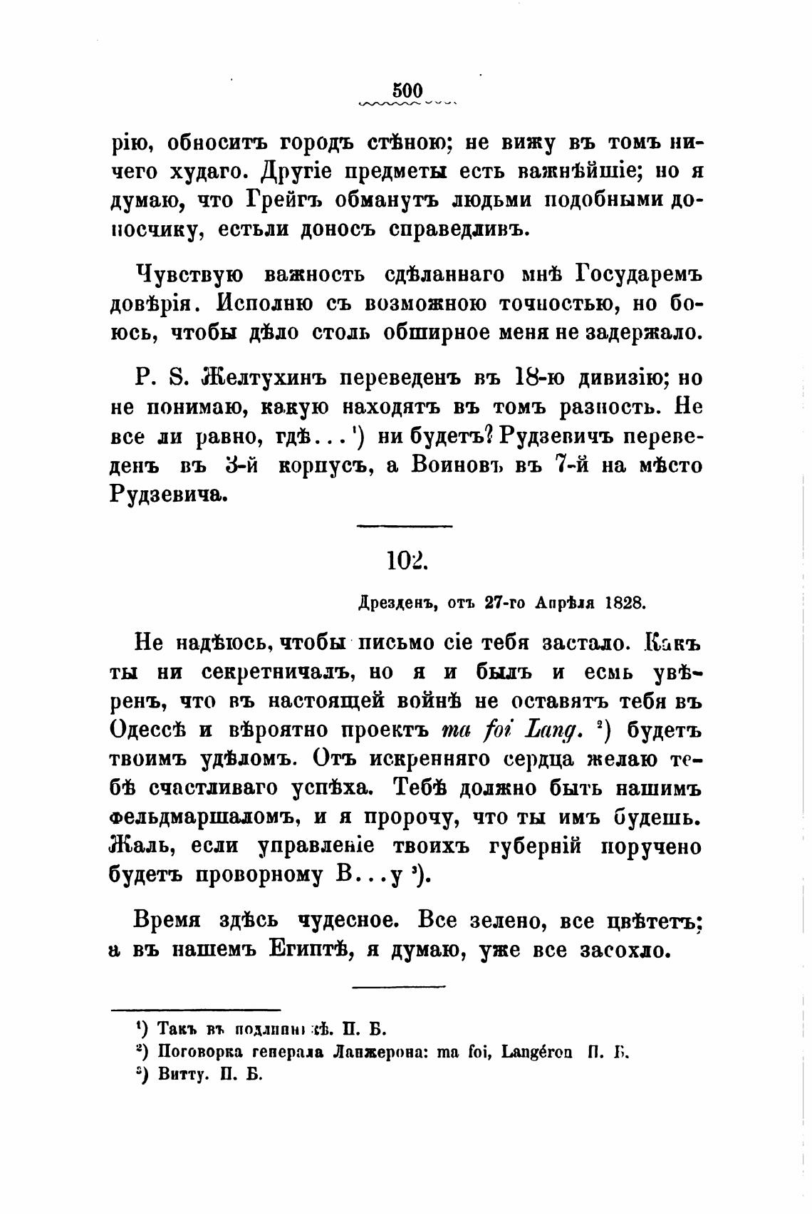 2) Поговорка генерала Ланжерона: та foi, Lang6ron П. Б.