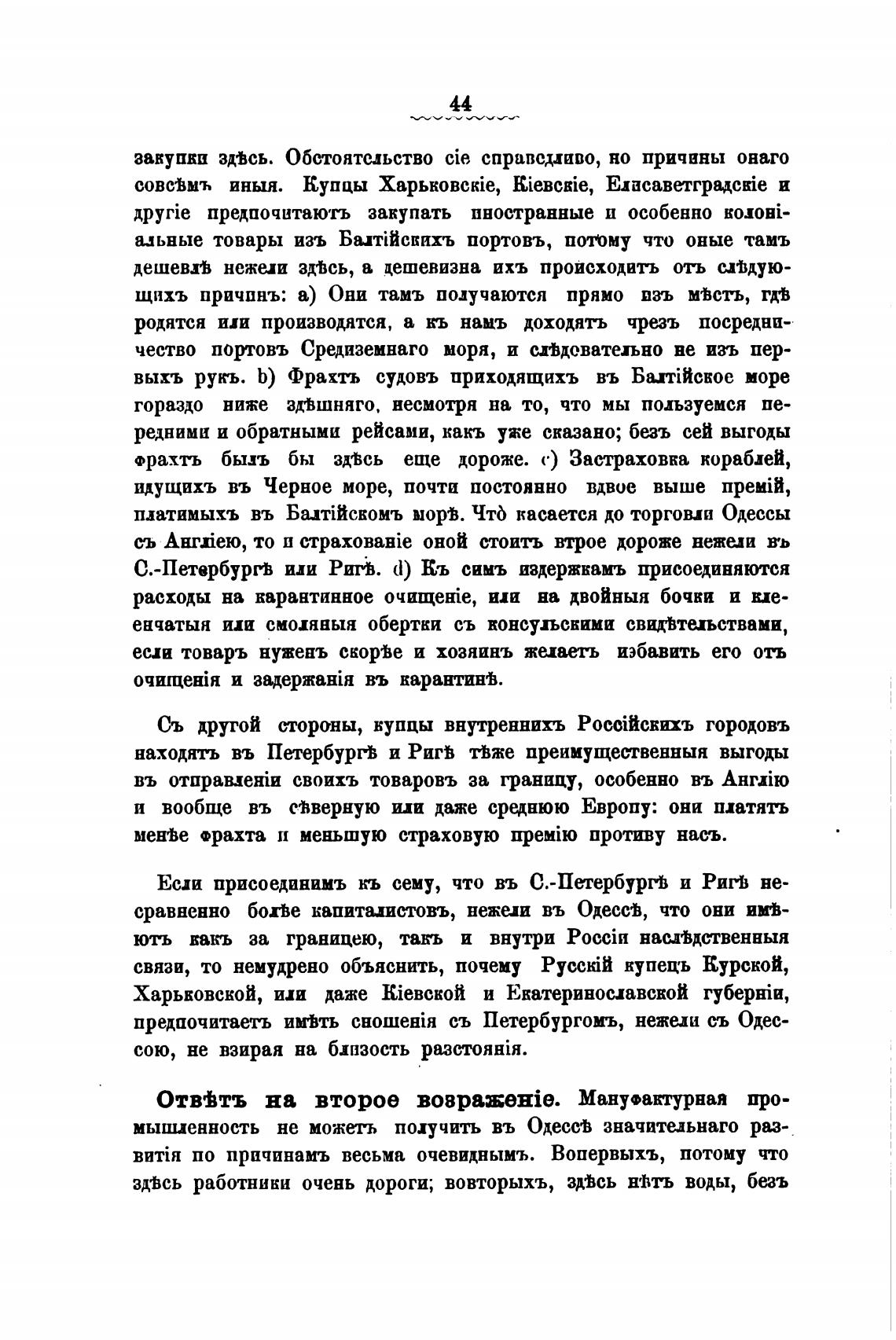предпочитаеть им%ть съ Петербургомъ, нежели съ Одес-
