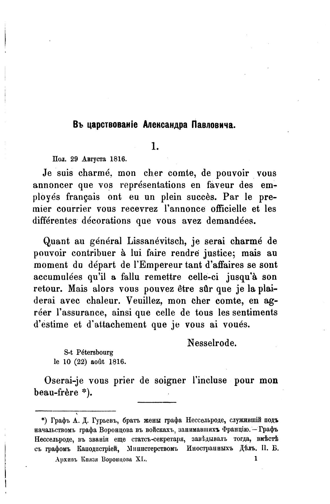 *) Графъ А. Д. Гурьевъ, брать жены графа Нессельроде, подъ