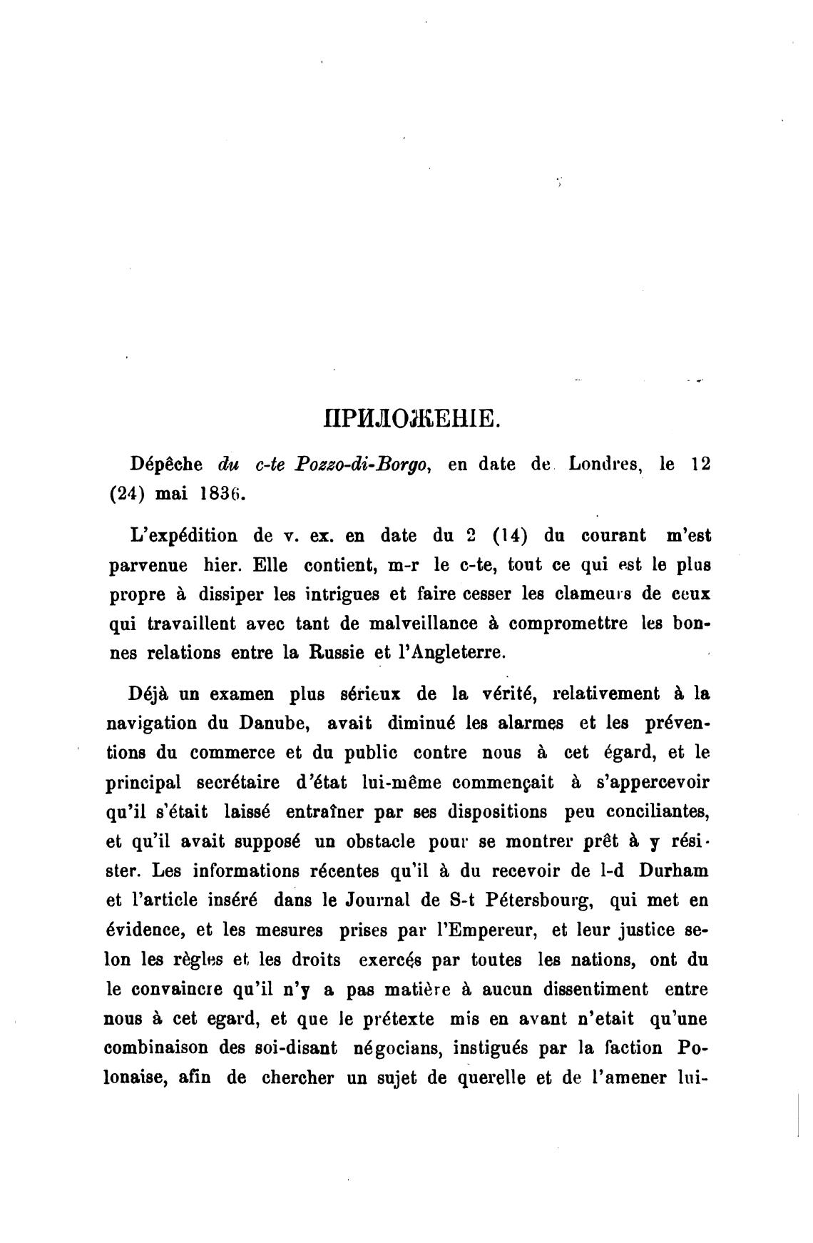 D6p6che du c-te Pozzo-di-Borgo, еп date de Londres, le 12