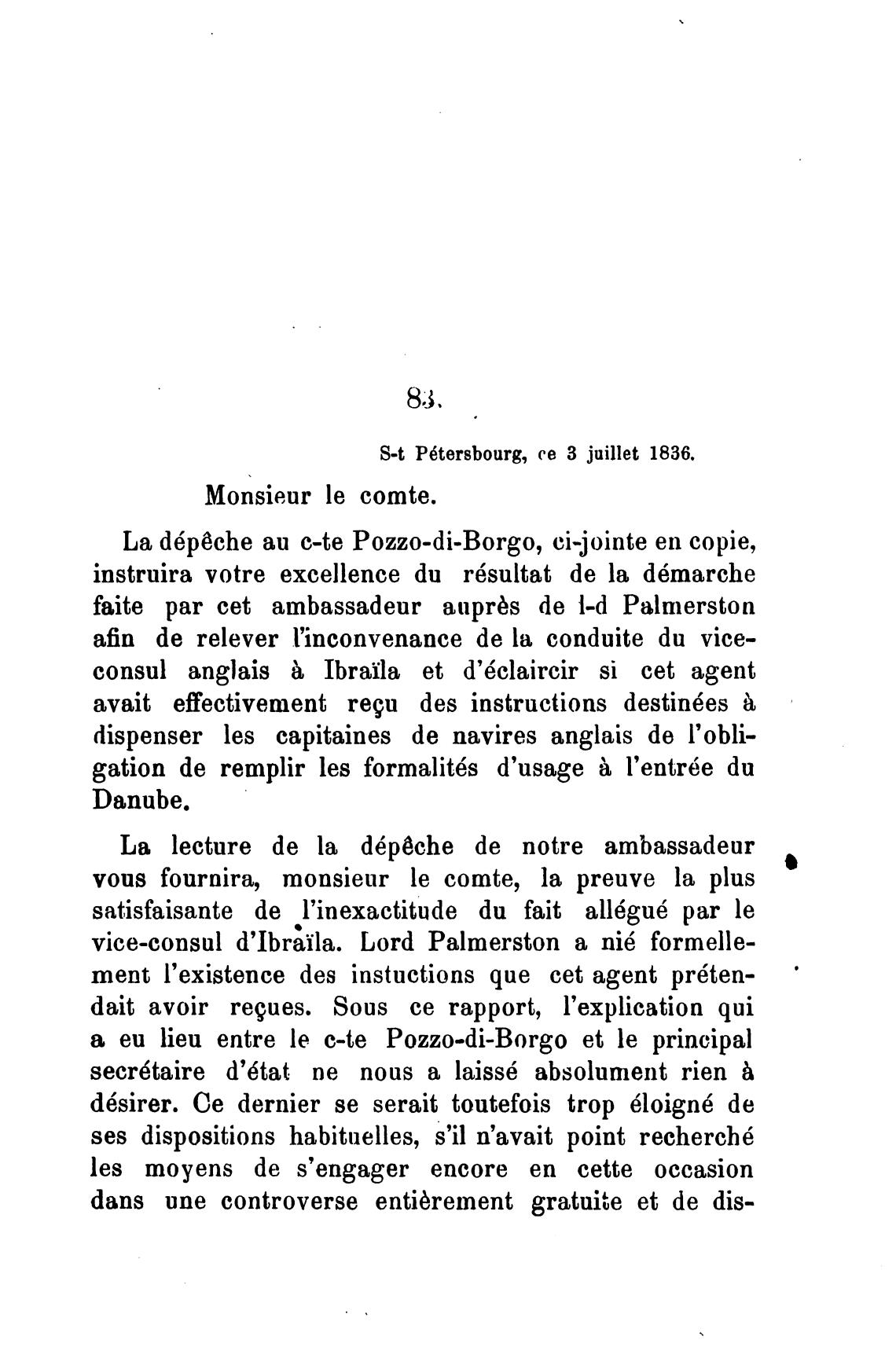 а еи lieu entre le c-te Pozzo-di-Borgo et le principal