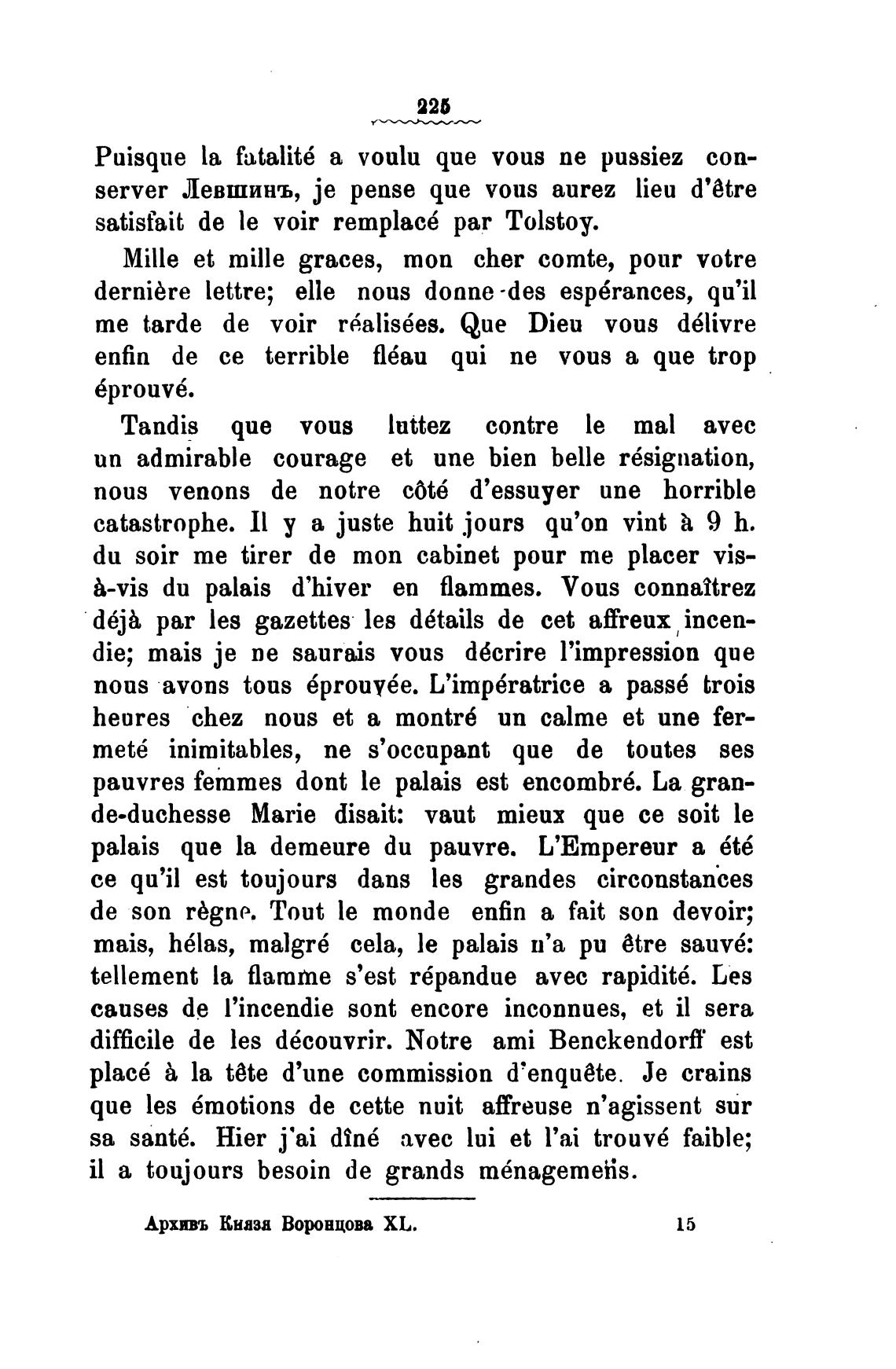satisfait de le voir remplac6 раг Tolstoy.