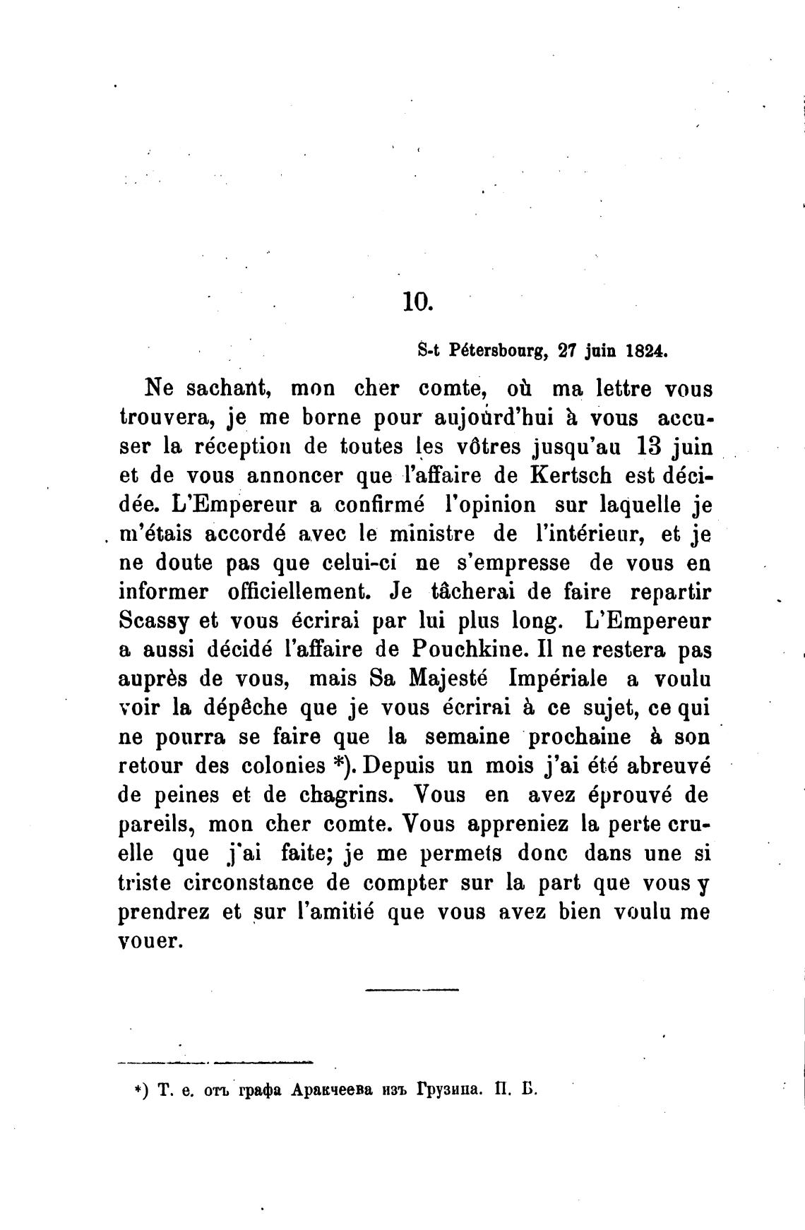 * ) Т. е. отъ графа Аракчеева изъ Грузина. П. Б.