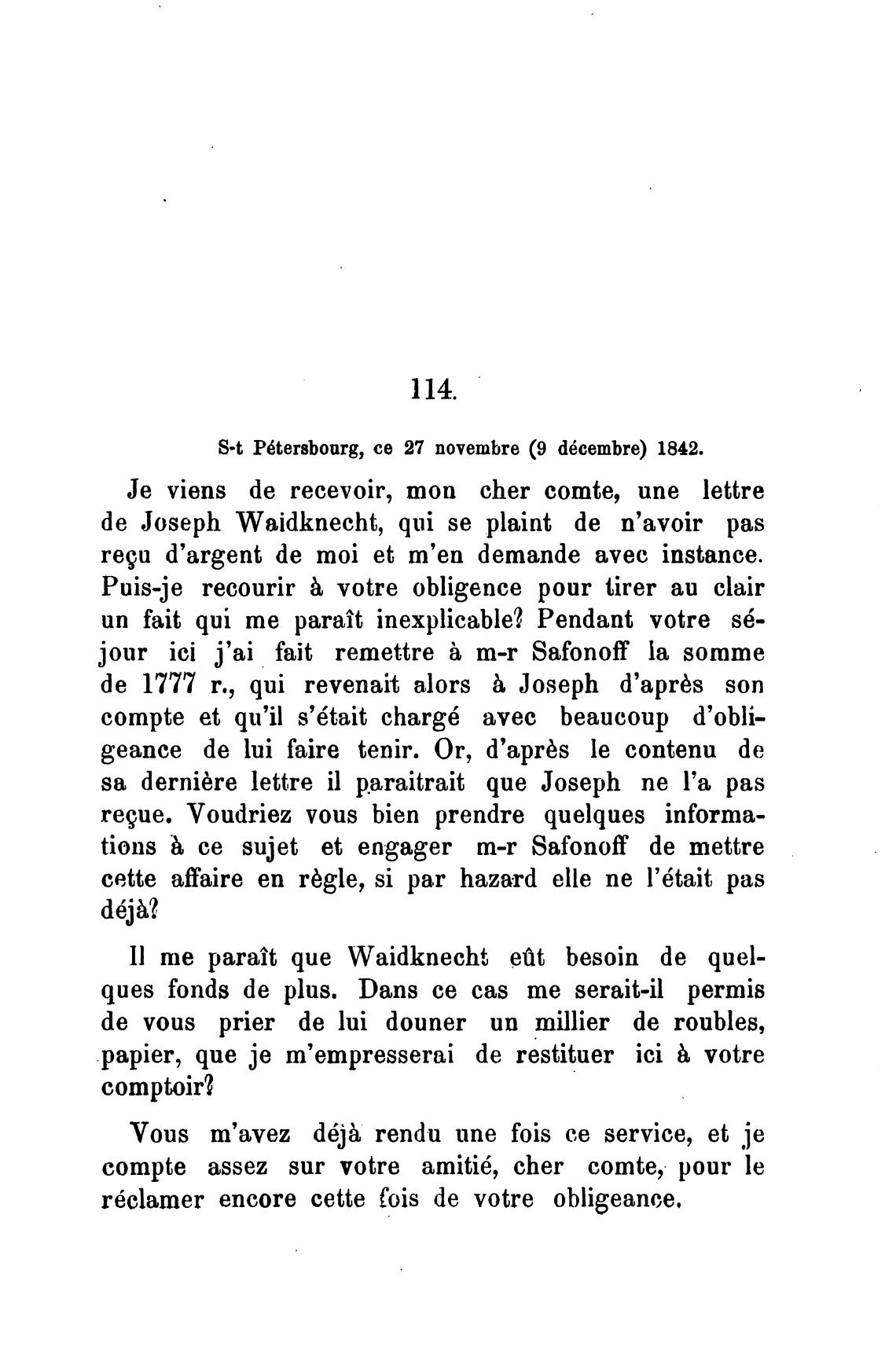 S•t P6tersbourg, се 27 novembre (9 d6cembre) 1842.