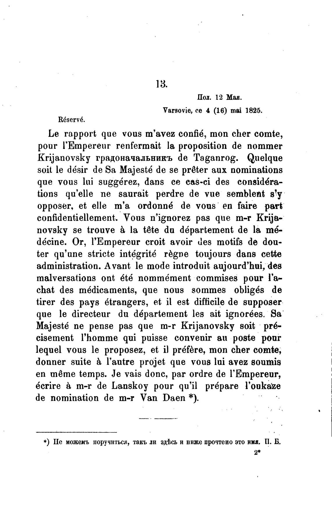 Varsovie, се 4 (16) mai 1825.
