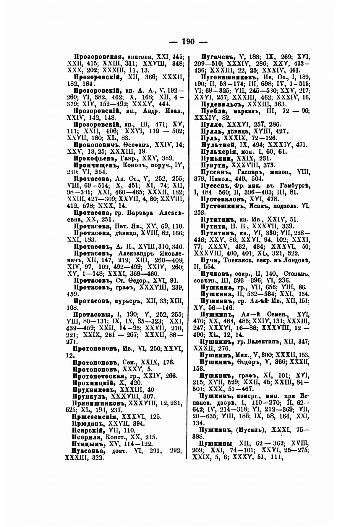 Протасовы, 1, 190; У, 252, 265;
