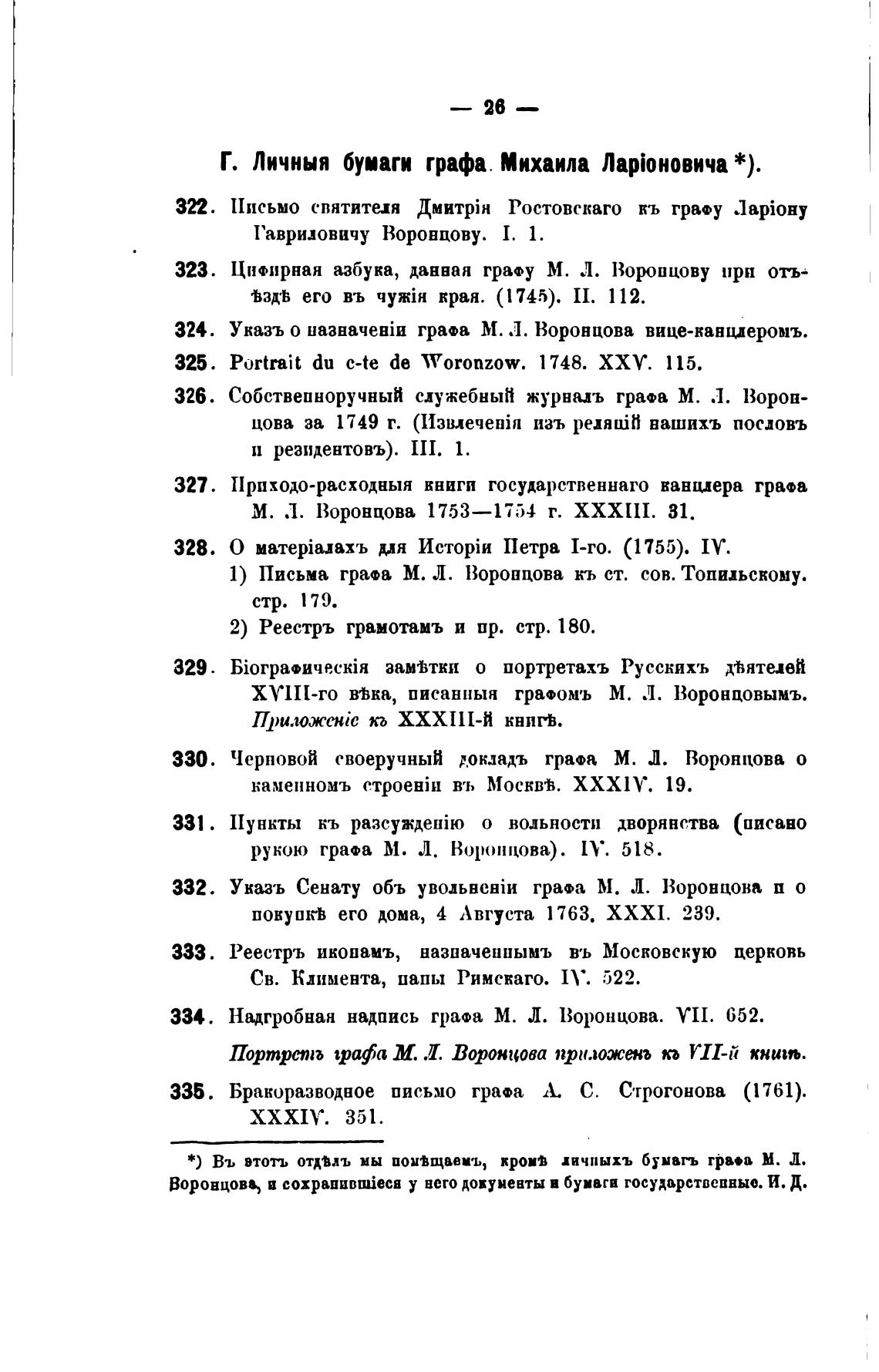 Г. Личныя бумаги графа. Миаила *).