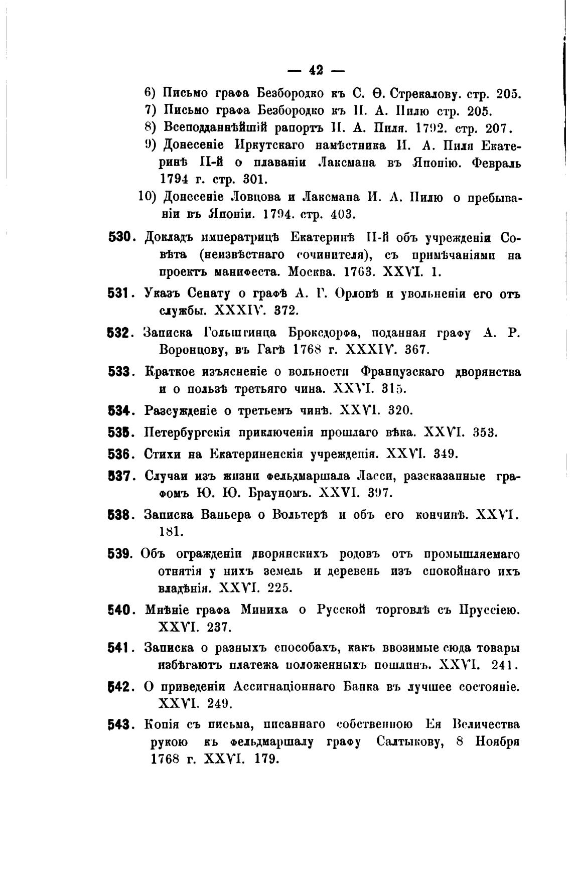 6) Письмо грап Безбородко въ С. е. Стрекалову. стр. 205.