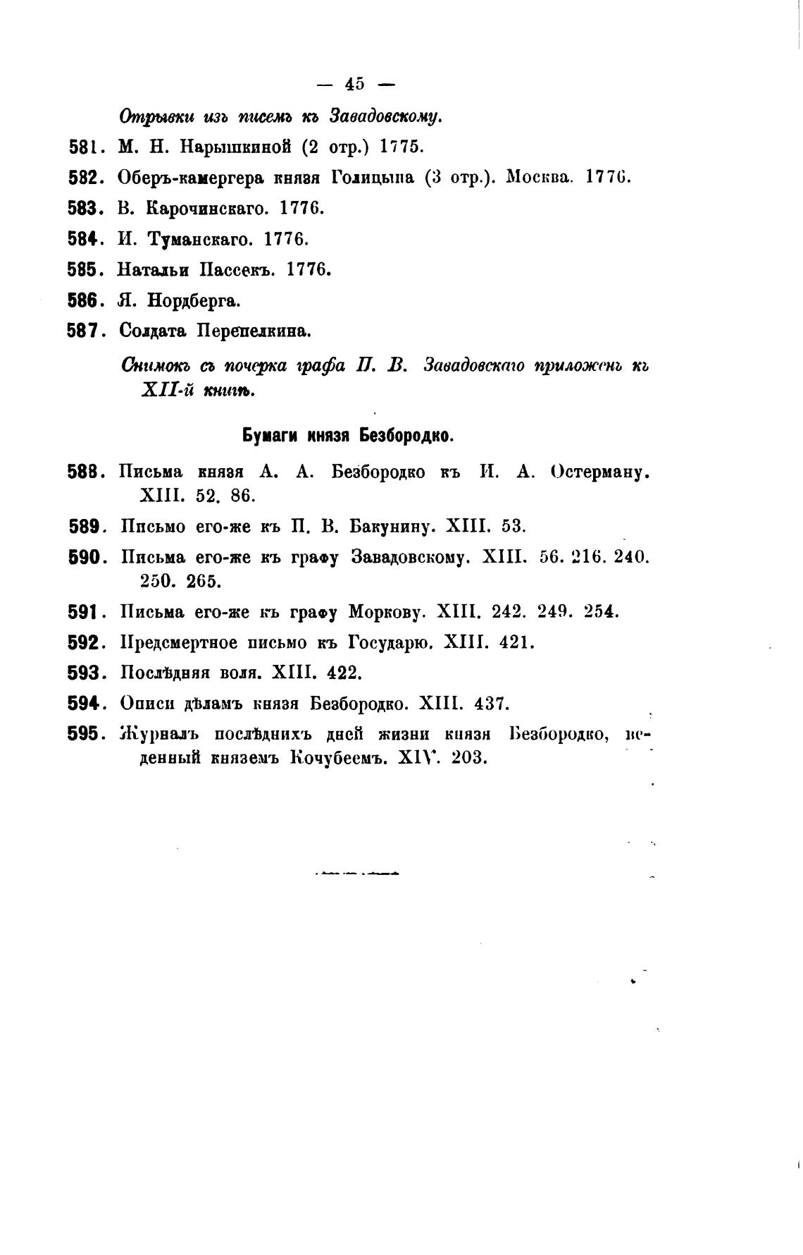Письма его-же въ гра.у Завадовскому. XIII. 56. 216. 240.