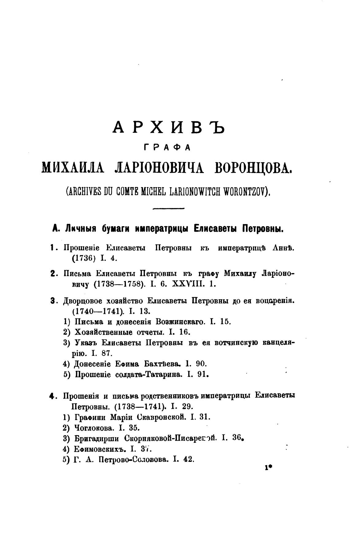 1 . Елисаветы Петровны кь императрицв Лвнв.