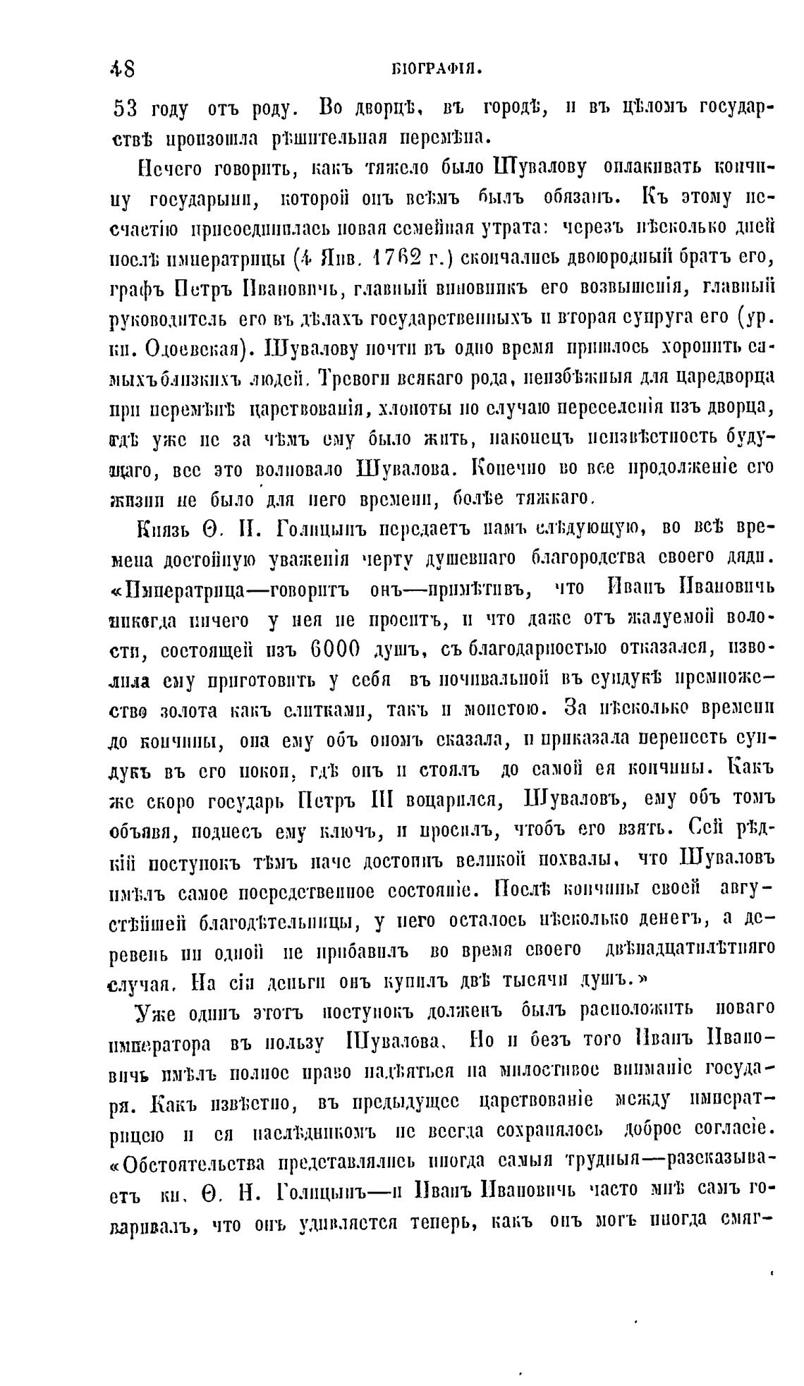 пос.т1; императрицы (Л, Янв. 1762 г.) скончались двоюродный брать его,