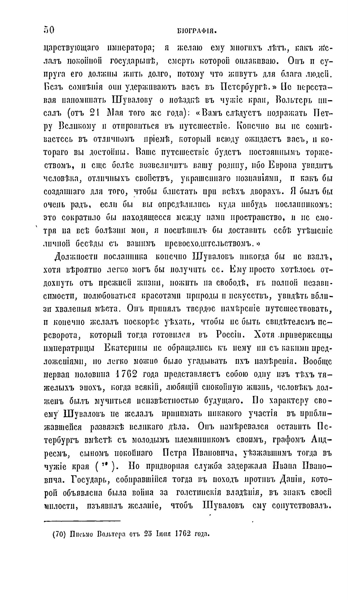 (70) Письмо Во.њтера отъ 25 1шнл 1762 тода.