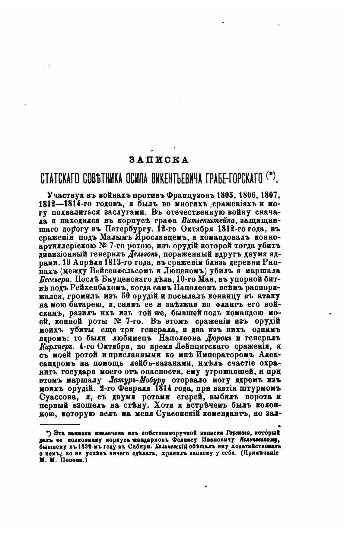 СТАТСКАГО СОННИКА ОСИПА ВИКЕНТЬЕВИЧА ГРАБЕ-ГОРСКАГО