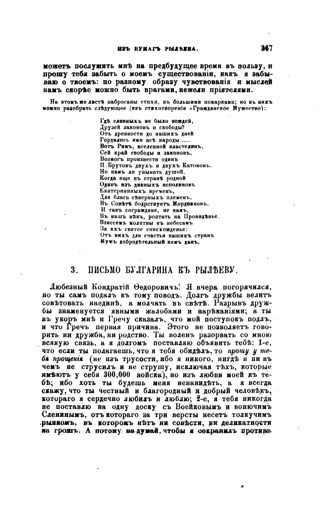 З. ПИСЬМО БУЛГАРИНА КЬ РЫЛЕВУ.