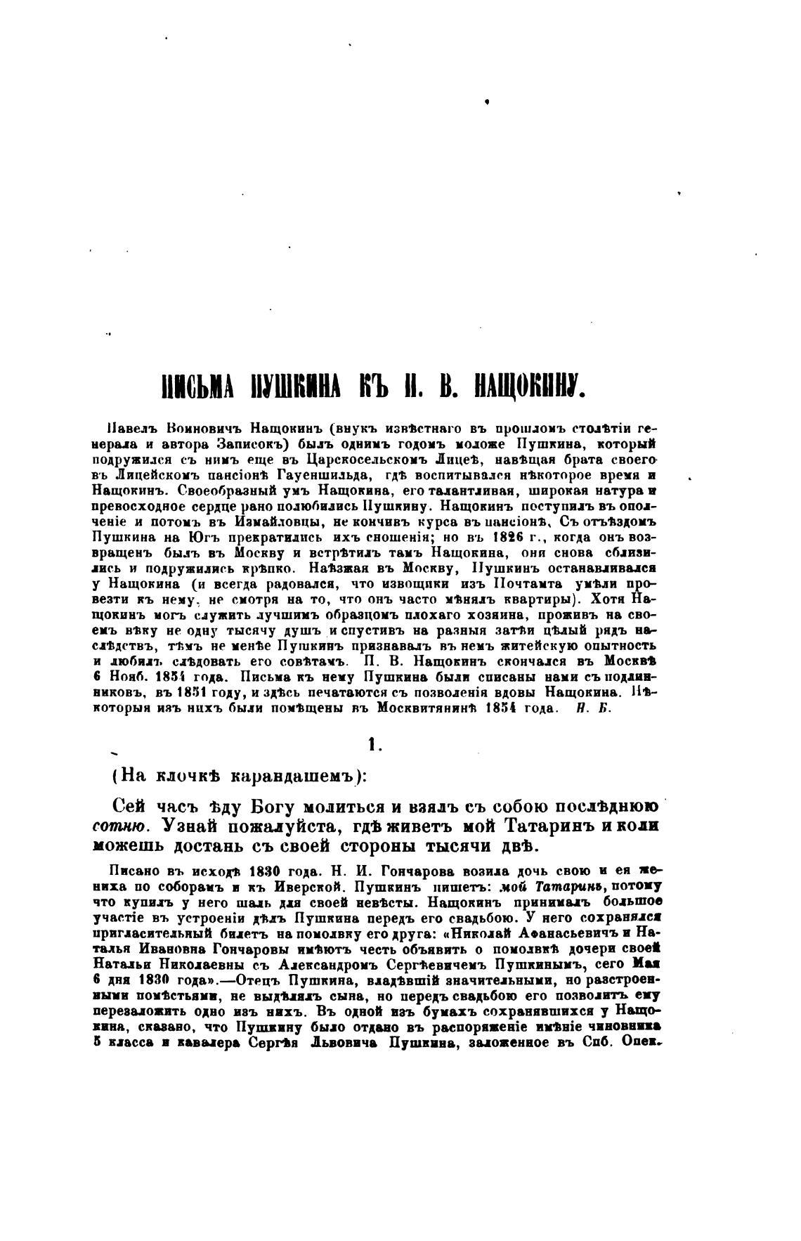 б дня 1830 года» .—Отецъ Пушкина, BxaOBTit значительными, но ристроев-