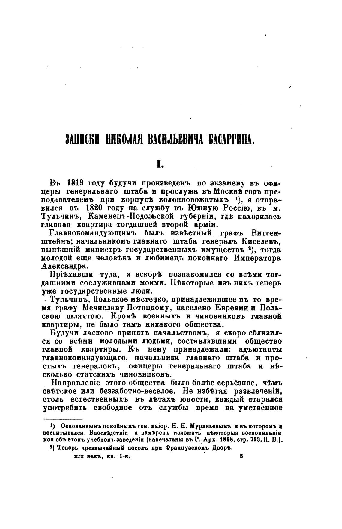 Въ 1819 году будучи произведень по экзамену въ ОФИ-