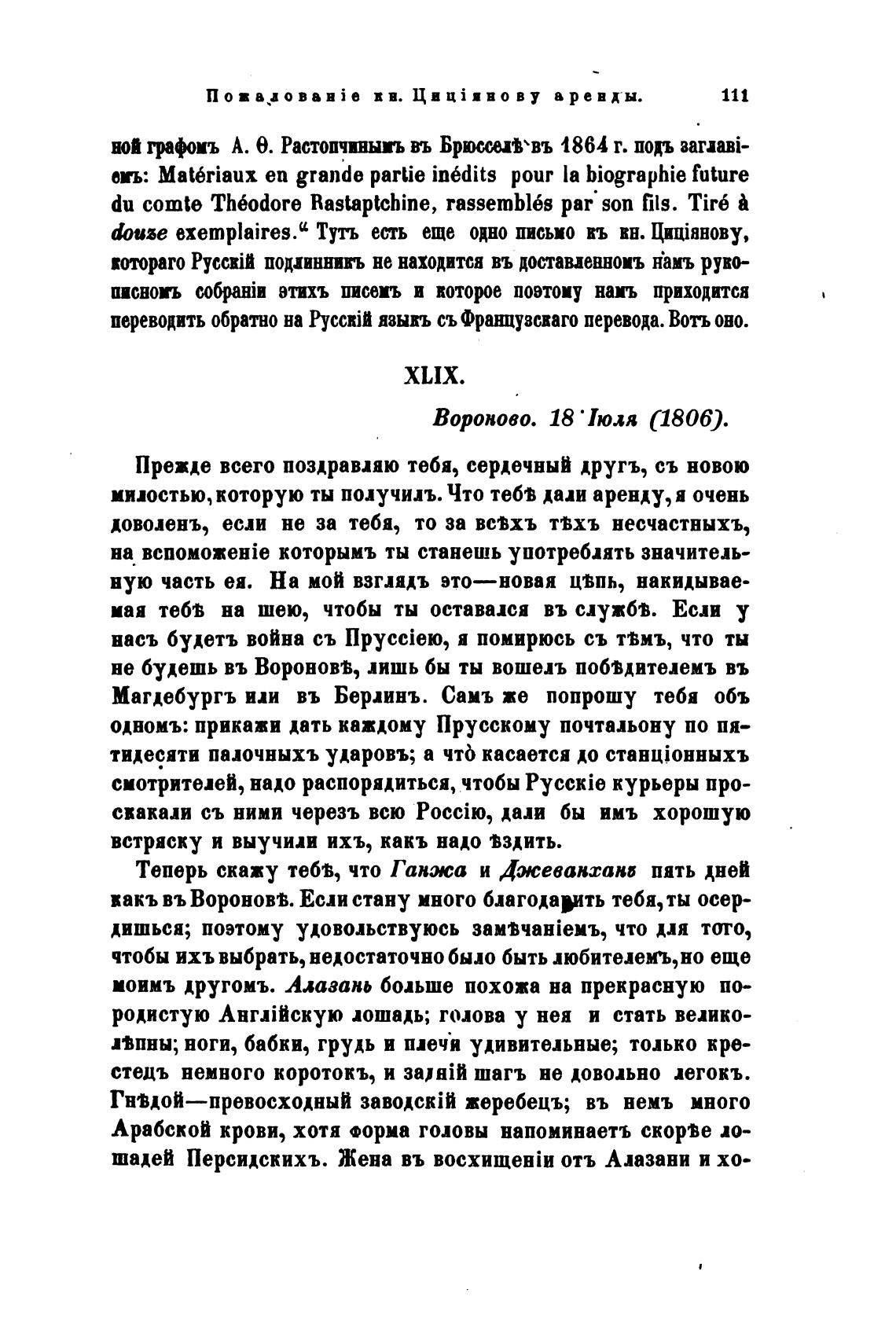du comte Th60dore Rastaptchine, rassemb16s par• son 61s. Tir6