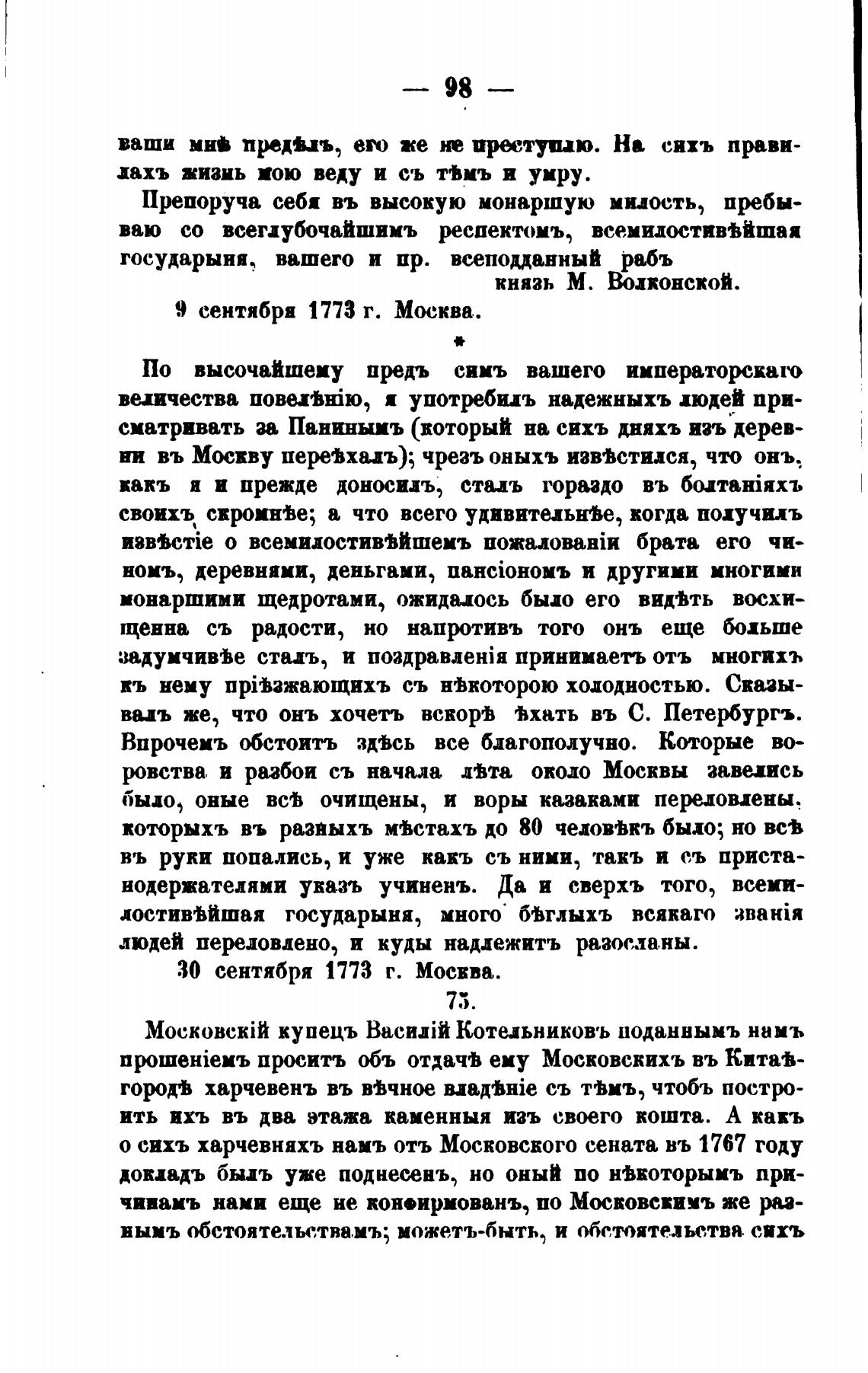 30 сентября 1773 г. Мосвва.