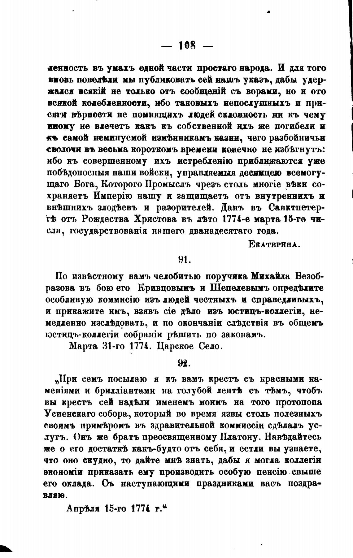 Марта 31-го 1774. Царское Село.